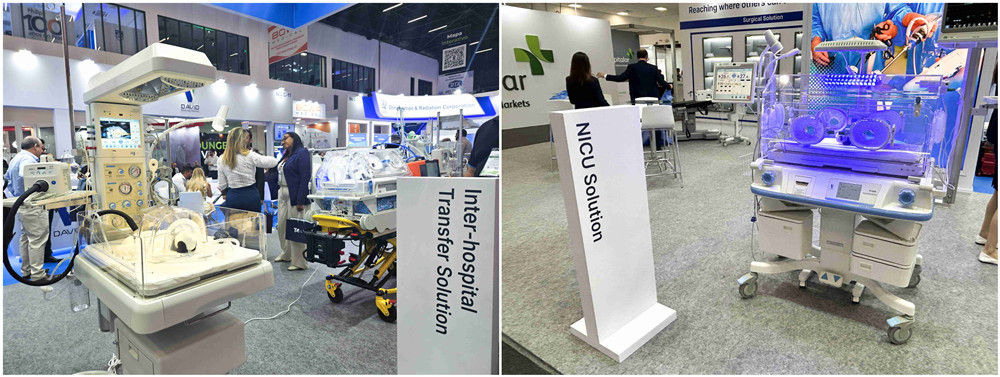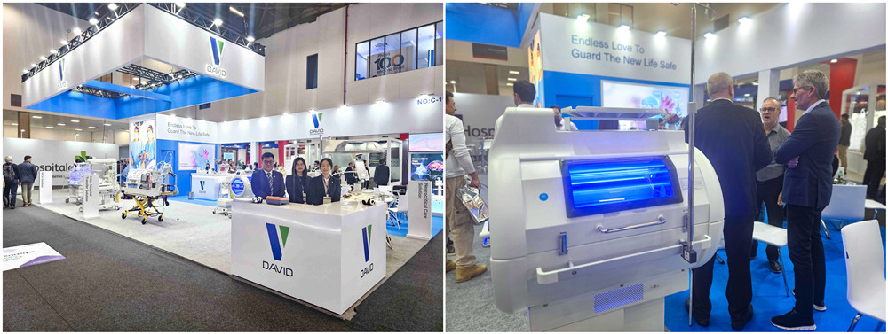 Lors de cette exposition, David Medical a présenté de nombreux produits et solutions complètes innovants et compétitifs, y compris la solution de transpert Iner-Hospitalier pour nouveau-né, la solution de « tout en un » pour le diagnostic et le traitement de la fonction cérébrale pédiatrique, la Couveuse Bébé Modèle YP-3100B, la Table Chauffante Modèle HKN-2200B, la Couveuse de Transport Modèle TI-2100B, le Moniteur EEG Modèle ND-8S, le Moniteur Patient Modèle D8S et les instruments chirurgicaux mini-invasifs, etc.