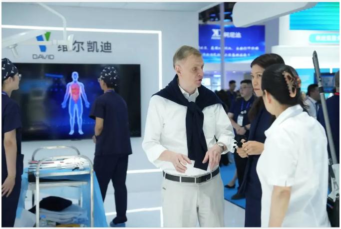 Les invités de la cérémonie d’ouverture du CMEF et l’équipe de direction ont visité le stand de David Medical accompagnés de M. Zhu Haosheng, directeur général adjoint de David Medical.