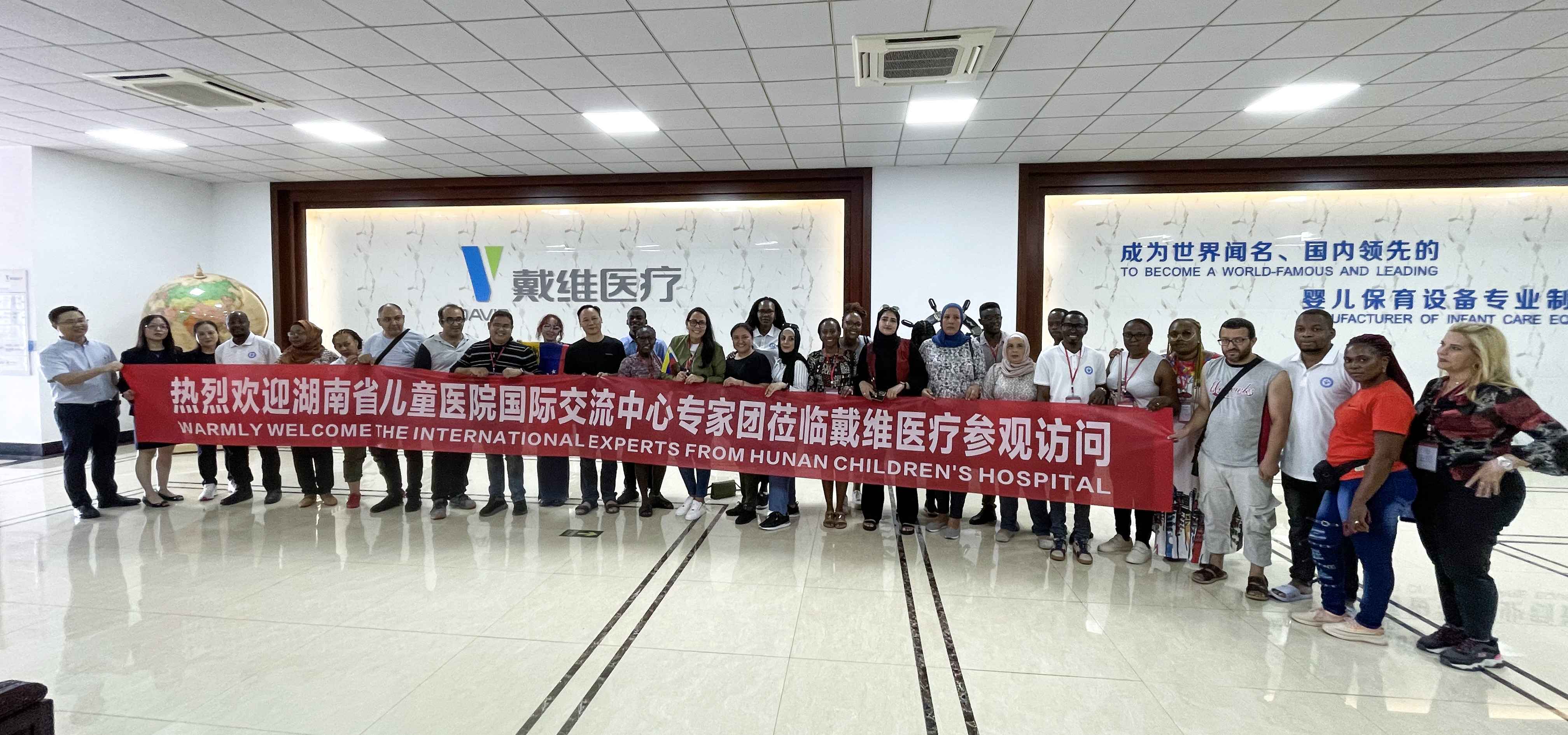 湖南省兒童醫(yī)院國際交流中心專家團(tuán)一行由委內(nèi)瑞拉、塞拉利昂、萊索托、博茨瓦納、阿爾及利亞、突尼斯、烏干達(dá)、坦桑尼亞、約旦等國家的相關(guān)醫(yī)生、專家組成,戴維醫(yī)療一眾高層領(lǐng)導(dǎo)攜公司成員對專家團(tuán)表示熱烈的歡迎,并陪同參觀公司廠區(qū),國際業(yè)務(wù)部相關(guān)負(fù)責(zé)人向?qū)<覉F(tuán)詳細(xì)介紹了企業(yè)的發(fā)展歷程、價值觀、經(jīng)營理念、愿景等,從研發(fā)、管理、團(tuán)隊、技術(shù)和生產(chǎn)應(yīng)用等各方面對戴維醫(yī)療及子公司維爾凱迪的產(chǎn)品及綜合解決方案進(jìn)行了全面的講解,為進(jìn)一步合作奠定了堅實基礎(chǔ)。