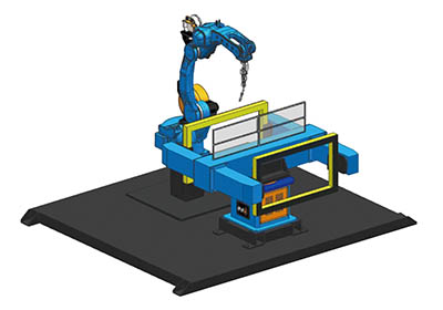 三軸水平旋轉(zhuǎn)變位機工作站結(jié)構(gòu)組成:焊接機器人、三軸變位機、工裝夾具等;